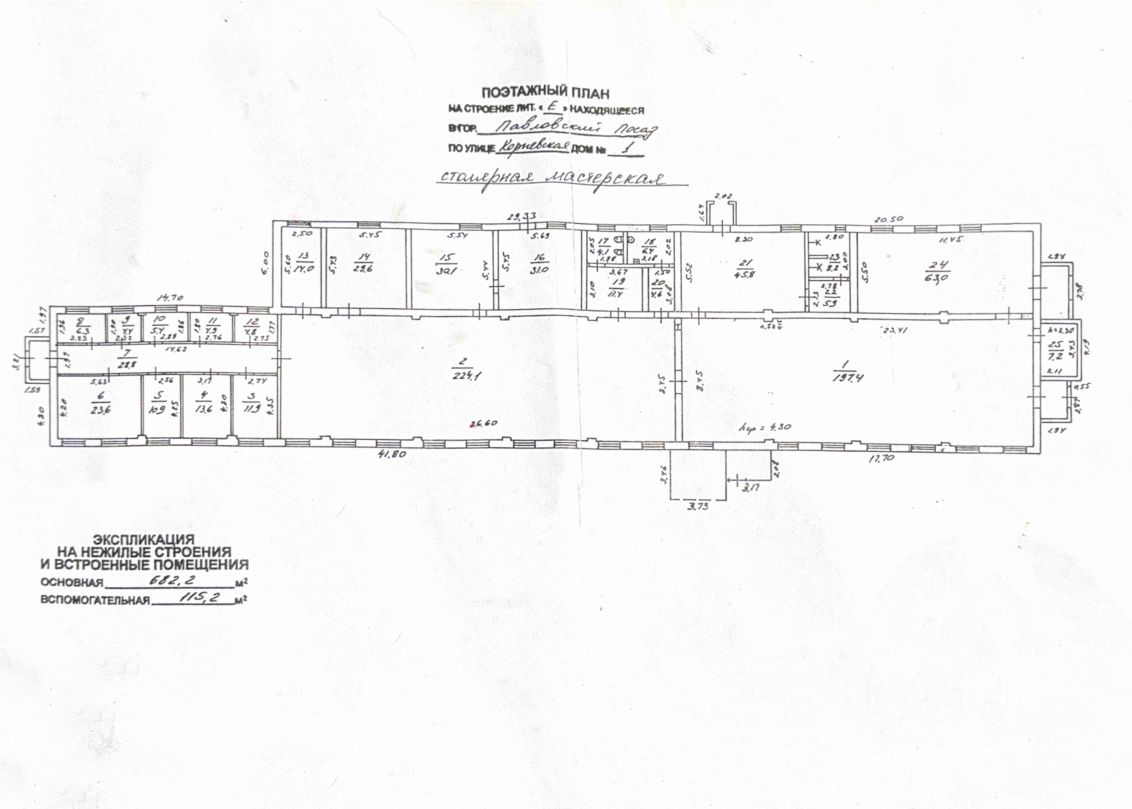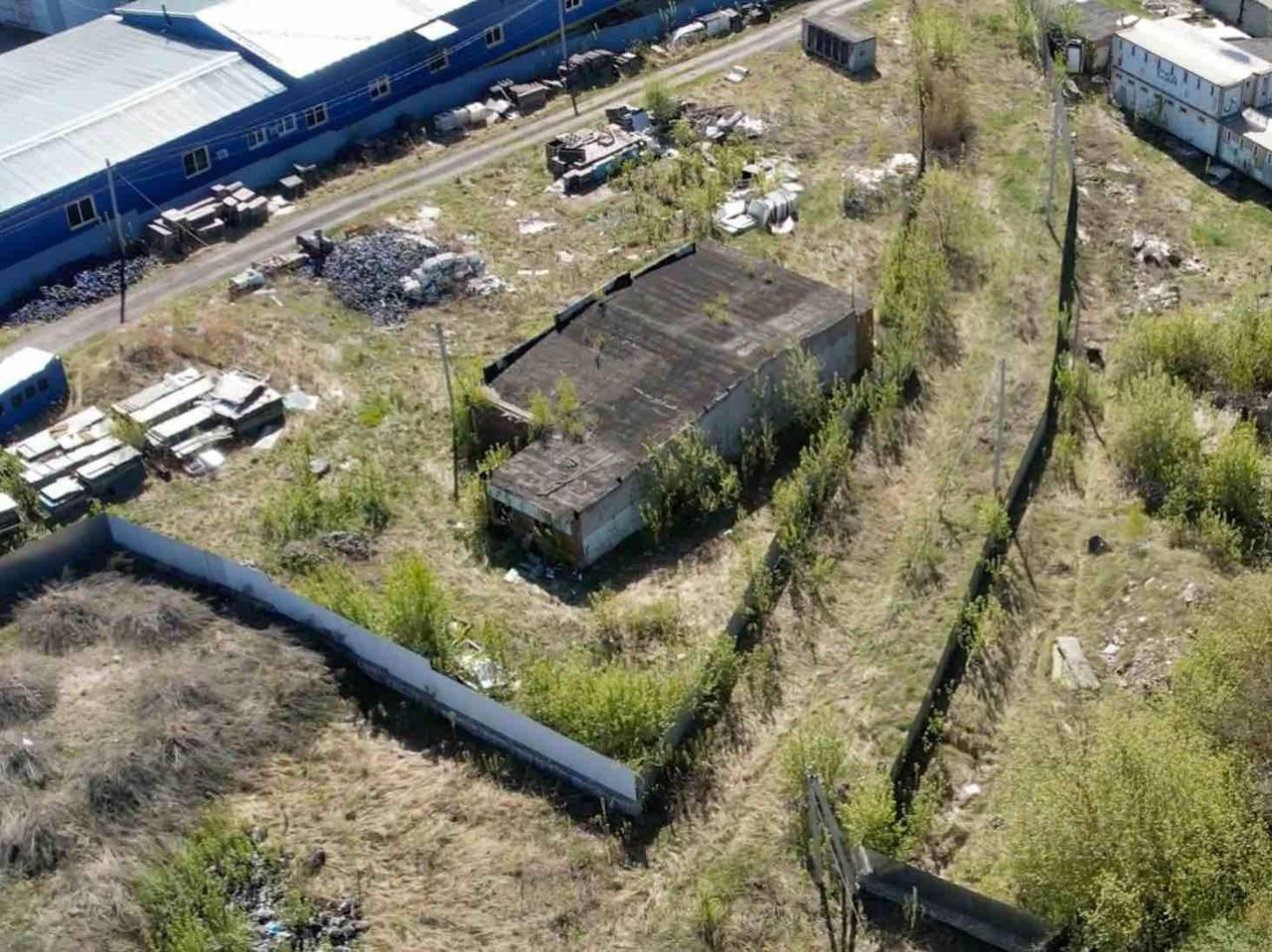 На территории большое капитальное здание площадью 800 кв. м с производственной и офисной частями. Строение состоит из двух больших цехов площадью 200 и 230 кв. м и нескольких подсобных помещений с санузлами, комнатами для персонала, и кабинетами. Есть кухня и баня. В помещениях сделано отопление, установлены пластиковые окна, сделана новая кровля из oцинкoвaнного проф листа. Материал стен строения кирпич. Высота потолков от 3.20 м до 4.30 м. Есть фундамент для размещения станка с высокой нагрузкой. Также на территории есть неосвоенное строение под ремонт площадью 280 кв. м. бывшая пилорама.