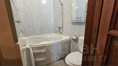 • Современная ванная комната, оформленная в плитке, с угловой ванной и совмещённым санузлом — всё для вашего комфорта.