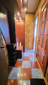 • Полы: в коридоре, кухне и ванной — практичная керамическая плитка, в комнате — уютный ламинат, создающий тёплую атмосферу.