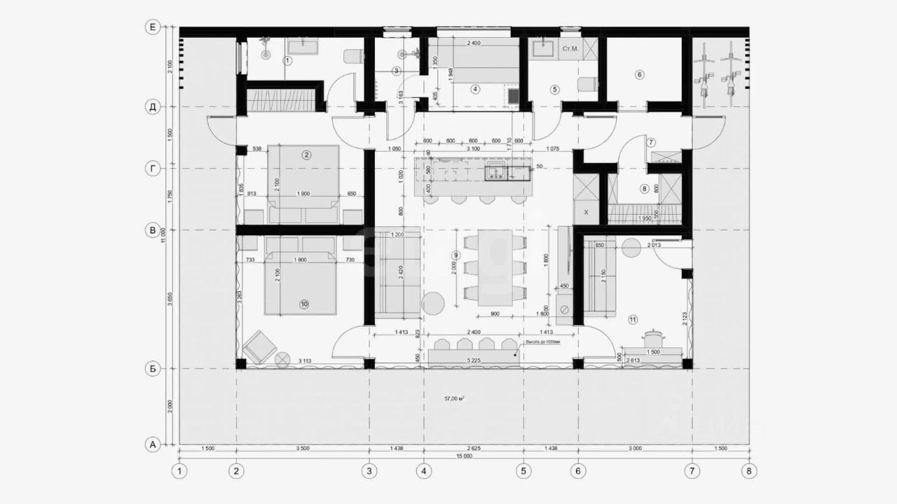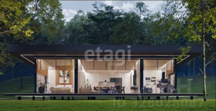 Объект представляет собой стильное одноэтажное здание с панорамным остеклением, обеспечивающим обилие естественного света и непрерывную визуальную связь с окружающим ландшафтом. Планировка продумана для комфортной жизни: три изолированные спальни, просторная гостиная, совмещенная с кухней-столовой, два санузла и практичные гардеробные зоны. Из гостиной через панорамные раздвижные двери осуществляется прямой выход на большую террасу — идеальное пространство для отдыха и приема гостей с видом на собственный участок.