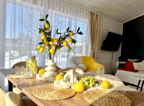 Сдаётся НОВЫЙ стильный дом, 120кв.м с панорамными окнами. Дом идеально подходит для семьи/компании до 6 человек(максимальное кол-во гостей 8 человек). Удобства: дом оборудован всем необходимым для комфортного проживания. 3 изолированные спальни(2 спальни с двуспальными кроватями, 1 спальня с 2мя односпальными кроватями), кухня-гостиная(с большим раскладным диваном), с/у и терраса 2 смарт TV Караоке,настольные игры,колонка капсульная кофе машина,кофе,чай Детский манеж,стульчик Дом полностью оборудован для проживания отдельностоящая баня на дровах чан бассейн мангальная зона Правила проживания: Минимальный возраст бронирования 25л заезд в 15:00(возможен заезд раньше по согласованию) выезд до 12:00 курение в доме ЗАПРЕЩЕНО возможно проживание с собаками (1500₽/сутки) не крупные породы залог 15000₽(возвращается после проведения уборки) баня-6000р, чан -6000р, бассейн -6000р Дом останется в таком же порядке как при заезде,не должно оставаться мусора,и элементарный порядок оставить после себя Шум после 22:00 на улице запрещен Запуск фейерверков запрещен на территории При желании можно добавить наполнения для купели : апельсины, грейпфрут, еловые ветки наслаждайтесь природными ароматами и глубоким расслаблением. Стоимость 1 500 Дрова для костровища 1000 Все банные принадлежности включены: полотенца Аромамасла и шапочки Просьба соблюдать чистоту и порядок. При бронирование на сутки оплачивается уборка 2500 Доп. уборка при сильном беспорядке 5000 ₽. Вывоз мусора за вас 3000р Шампура и решётку для мангала просьба мыть после себя, иначе уборка 500 ₽.